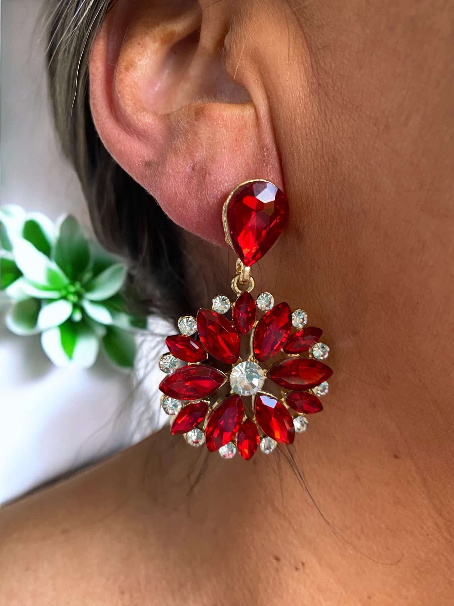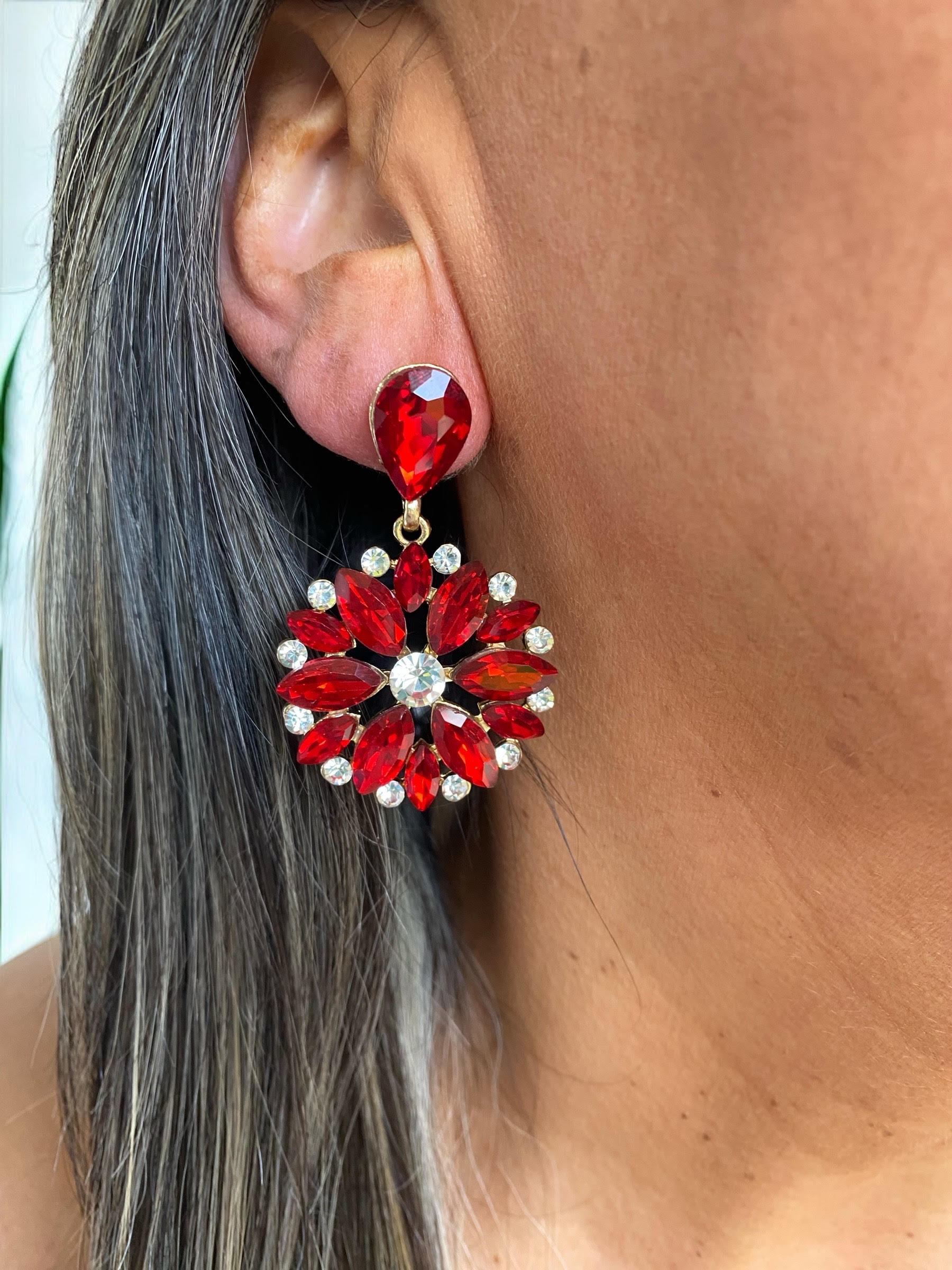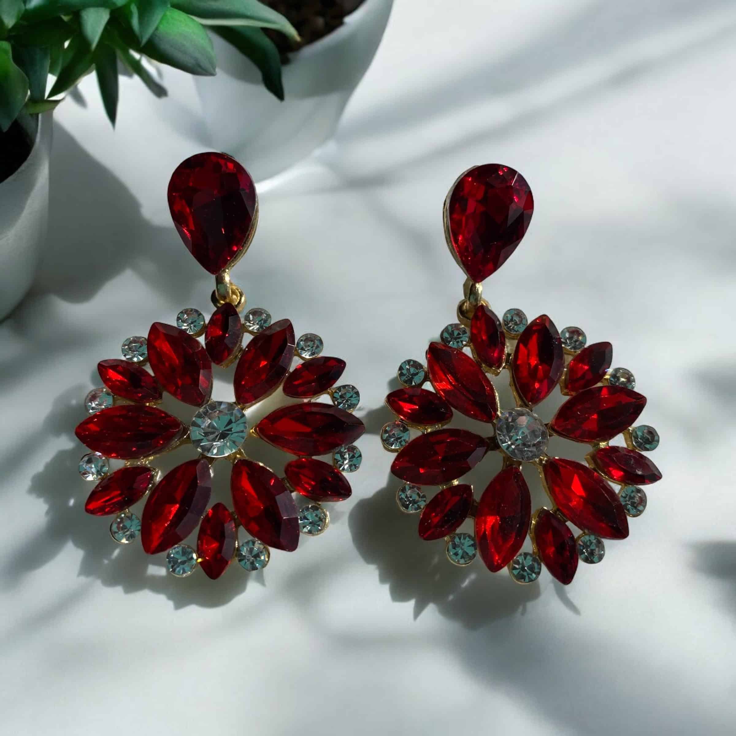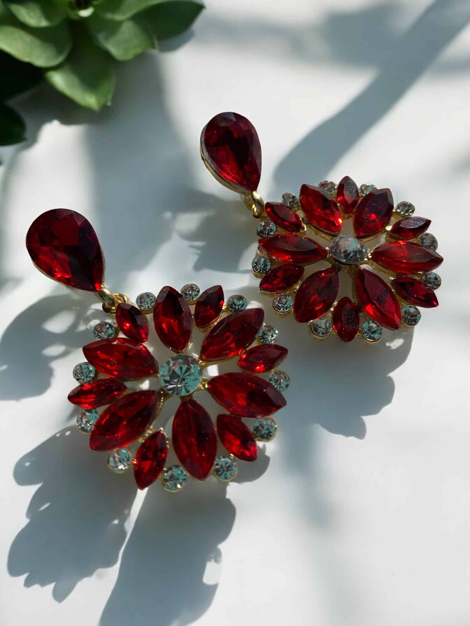 Bellos aros cristal rojo y puntos de cristal blanco atrevidos y originales