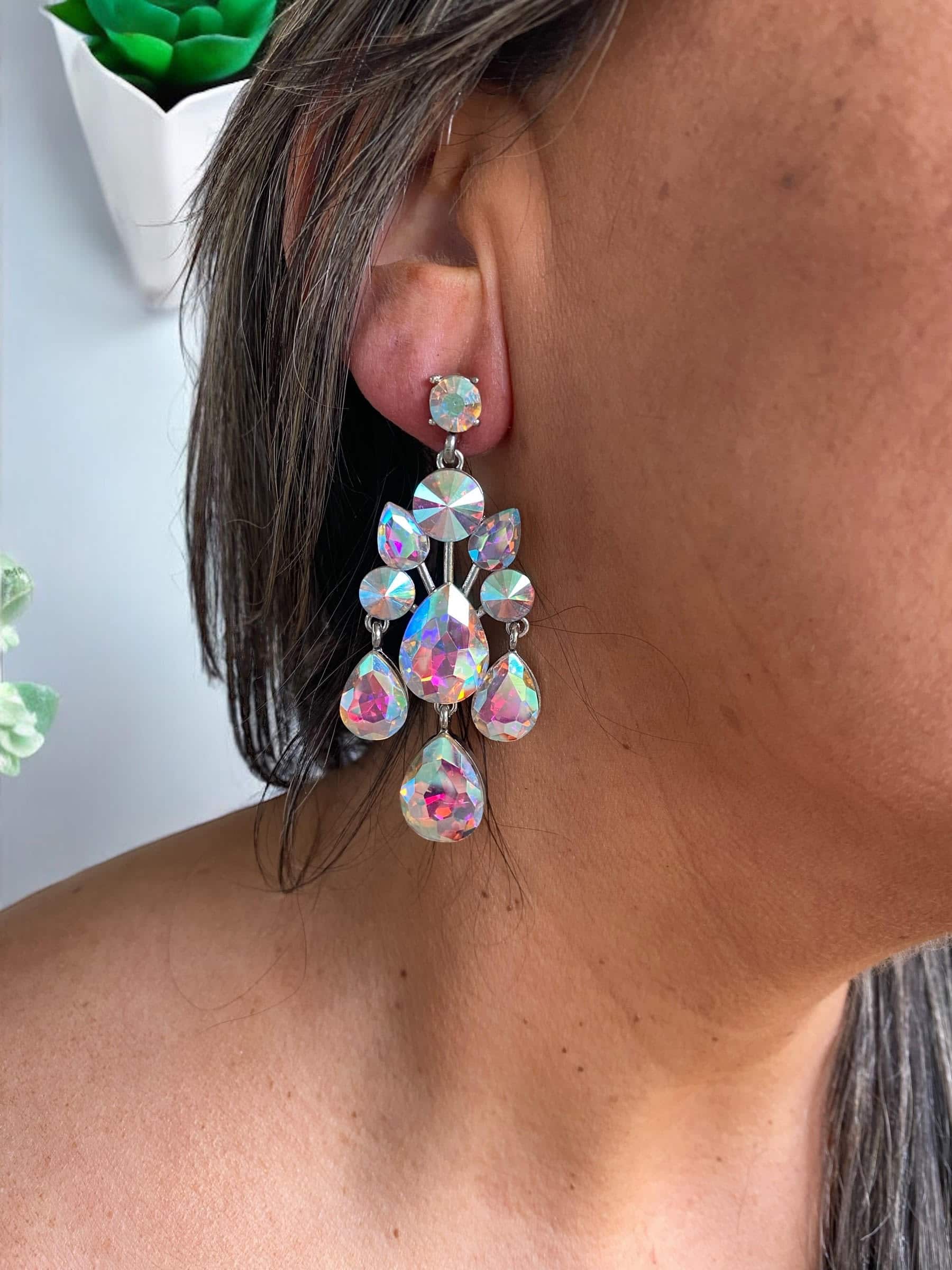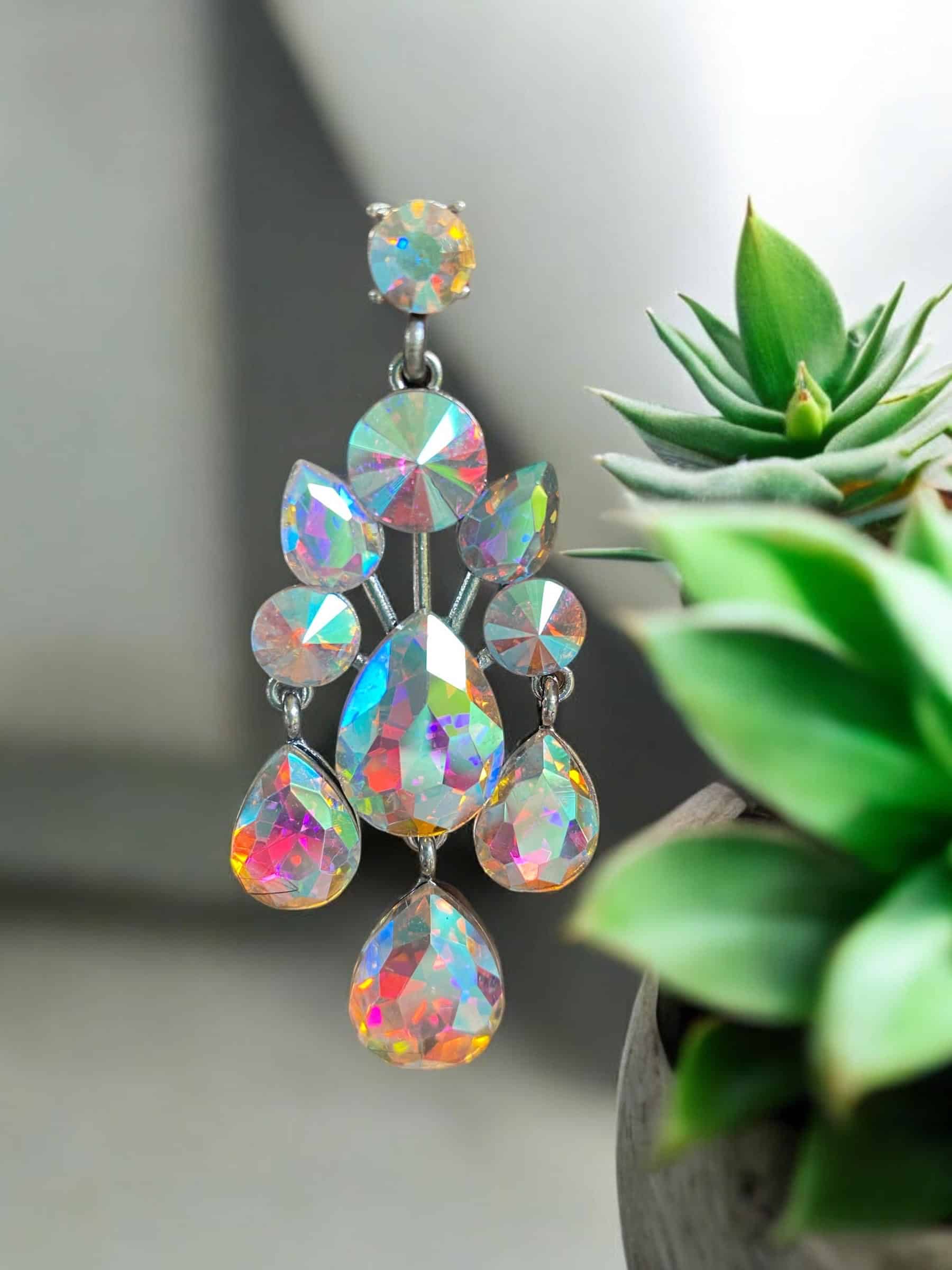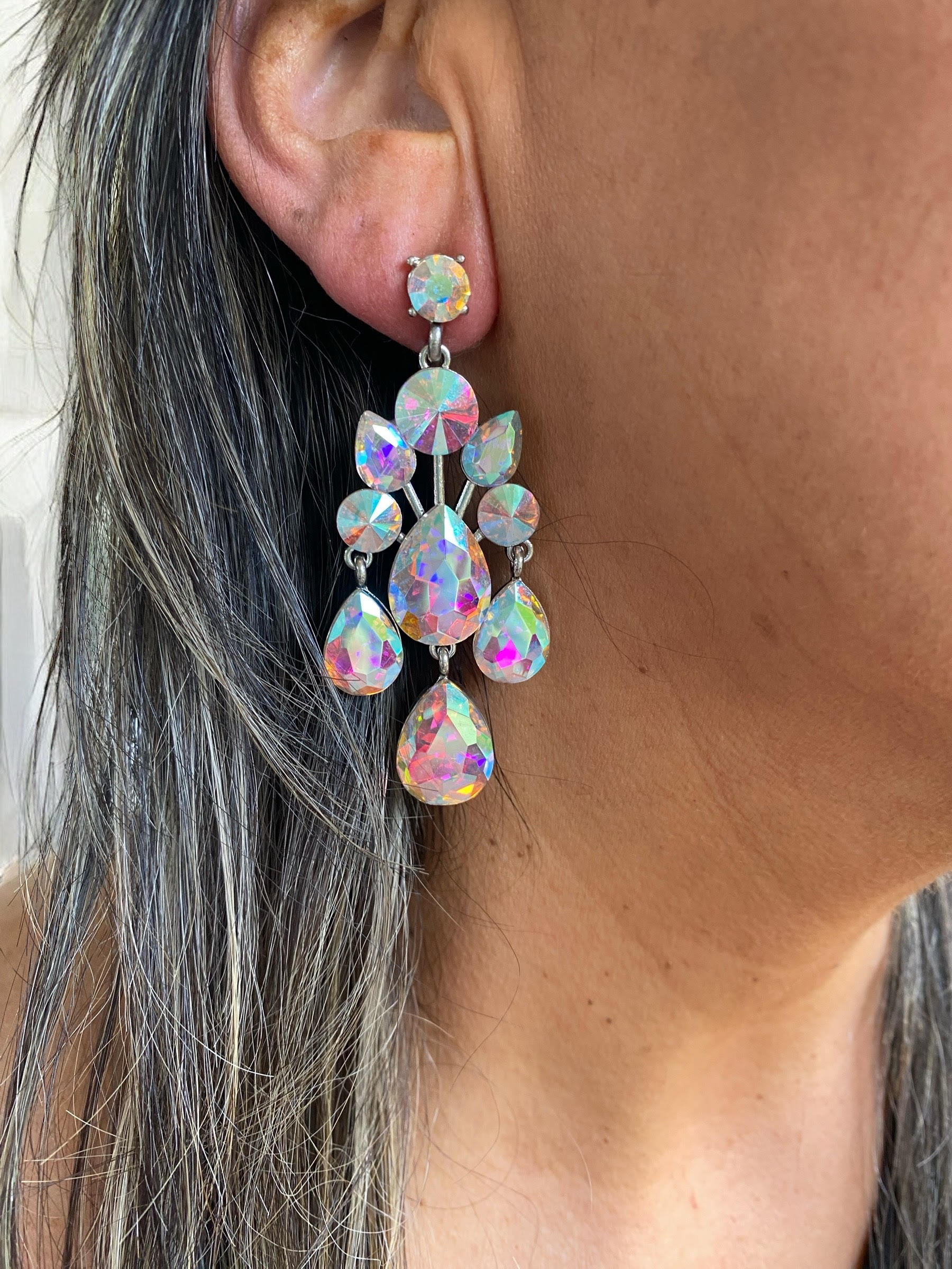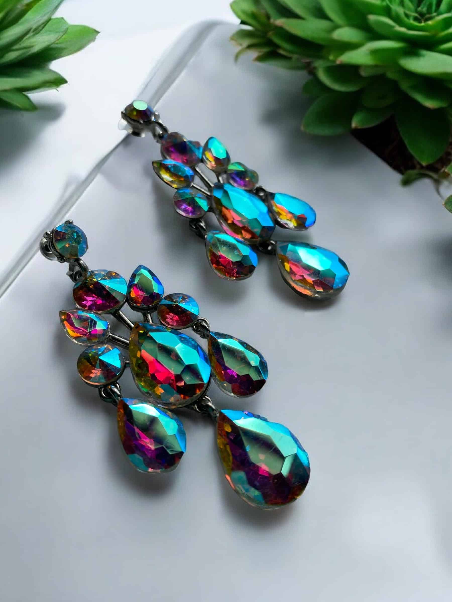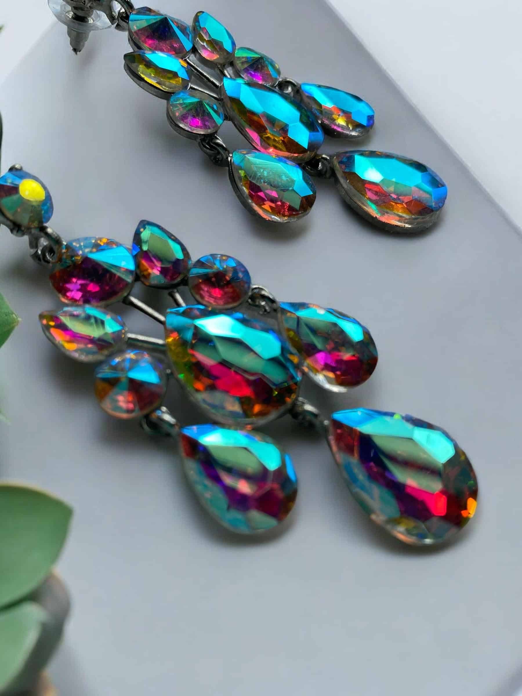 Aros cristales tornasol , ideal para darle vida y estilo al vestido que elijas .