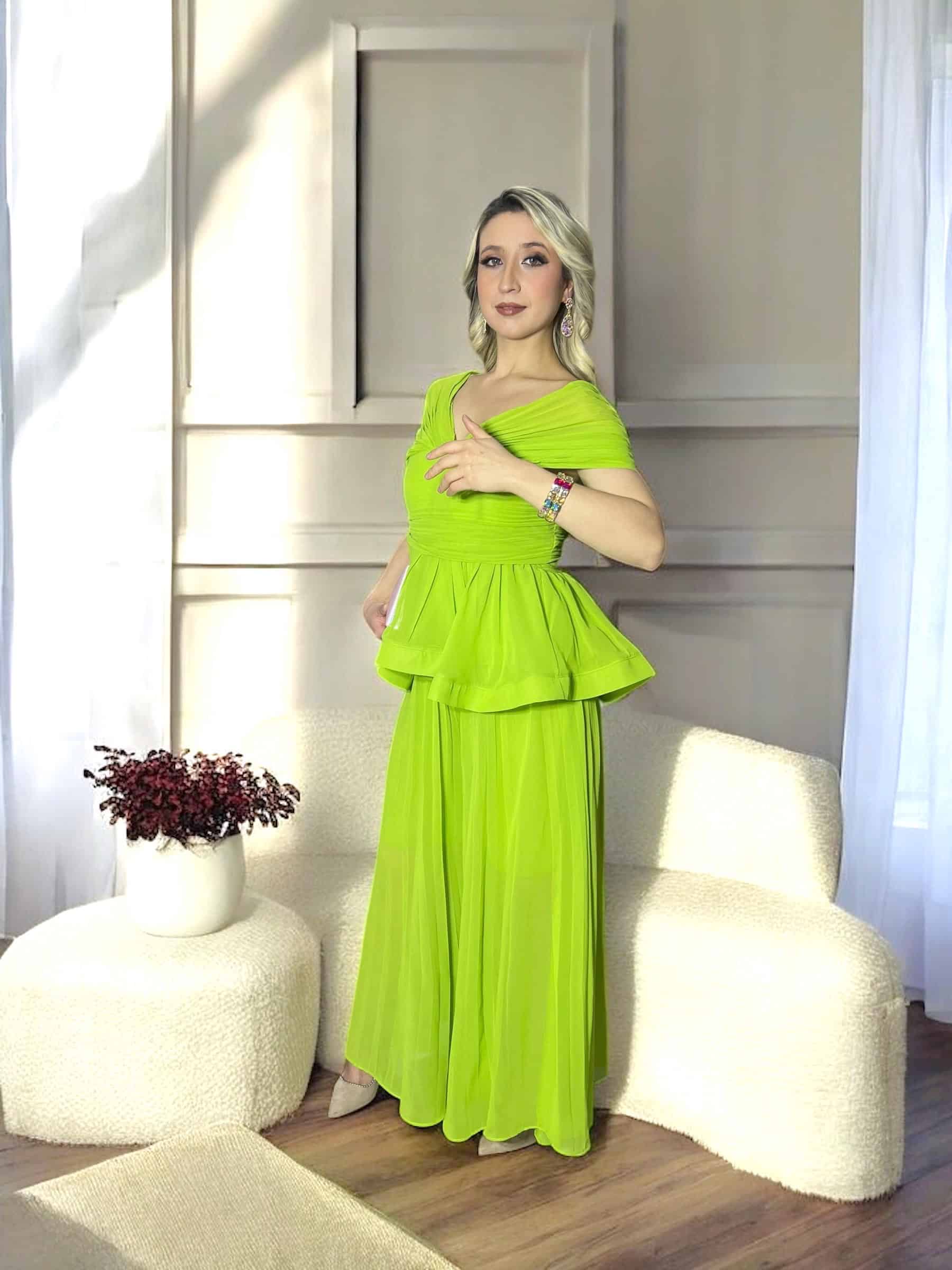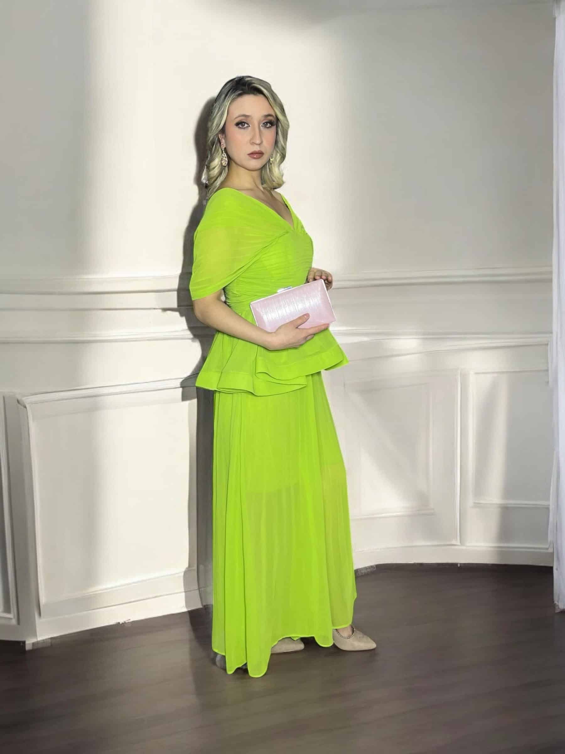 Traje de gasa (2 piezas) Este atrevido outfit color verde lima te hará sentir muy cómoda e inigualable