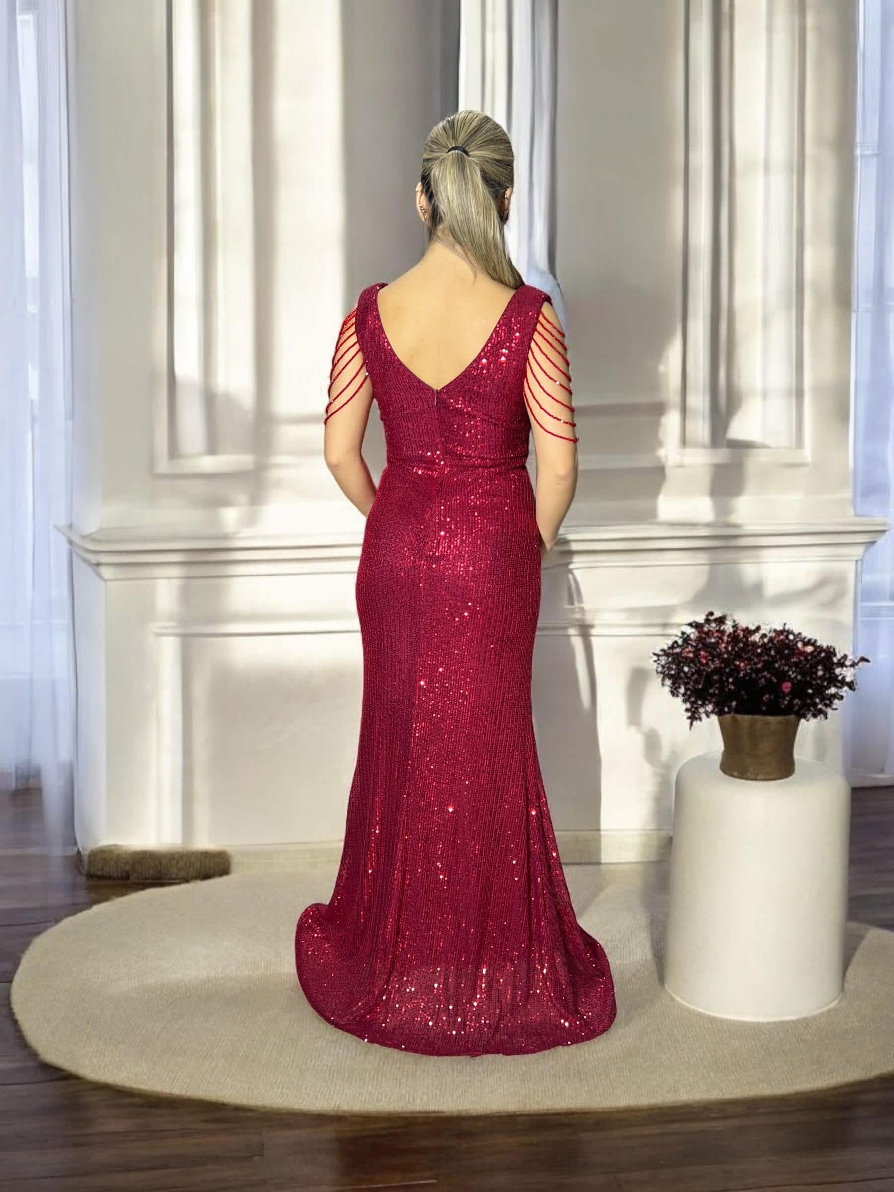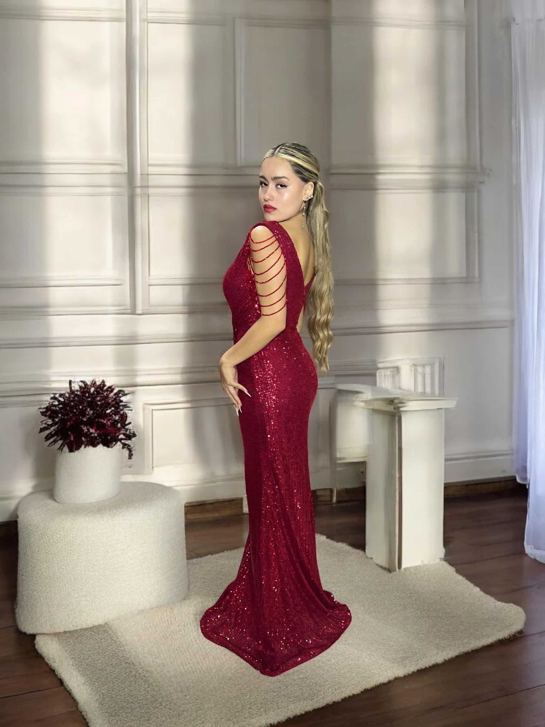 Haz una entrada inolvidable con este sublime Vestido de Fiesta, la encarnación del glamour y la feminidad. Cada centímetro de esta prenda ha sido meticulosamente cubierto con lentejuelas, creando un efecto brillante que baila con la luz, asegurando que serás el centro de atención en cualquier celebración.