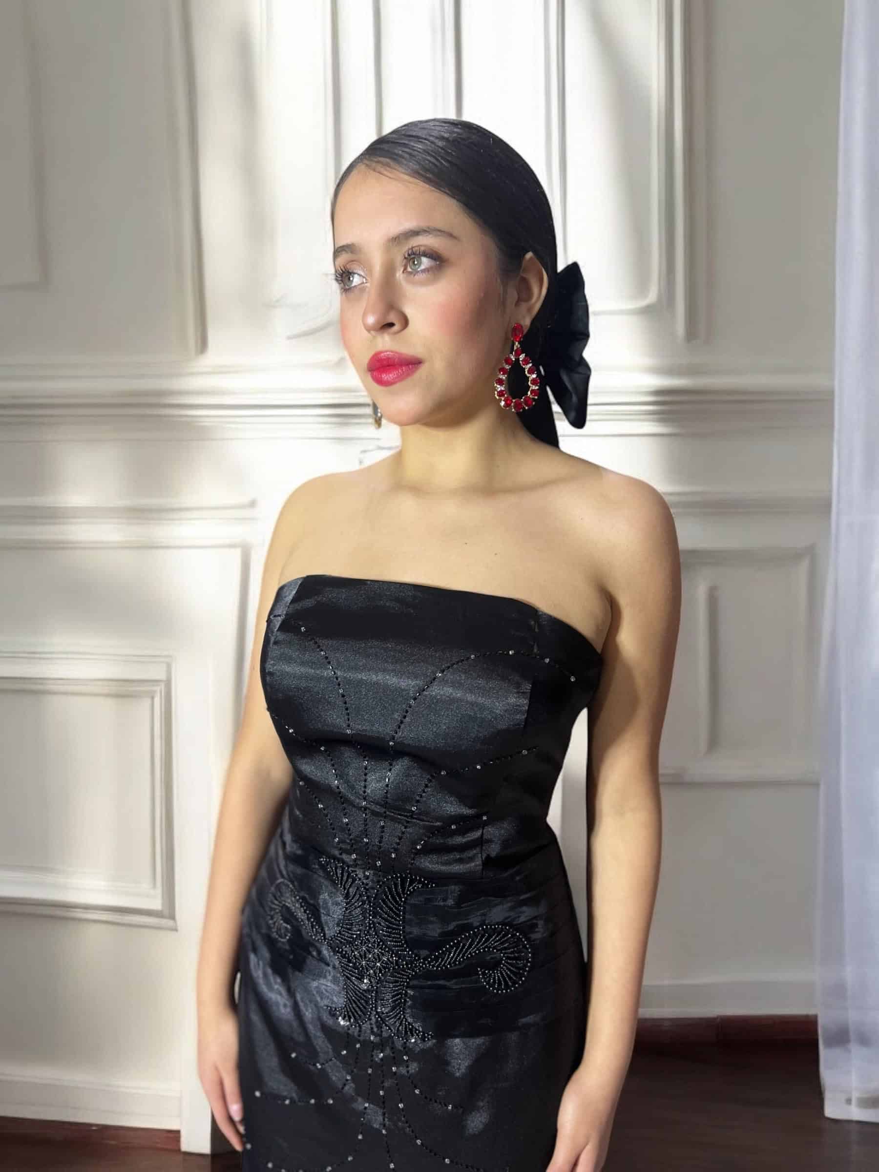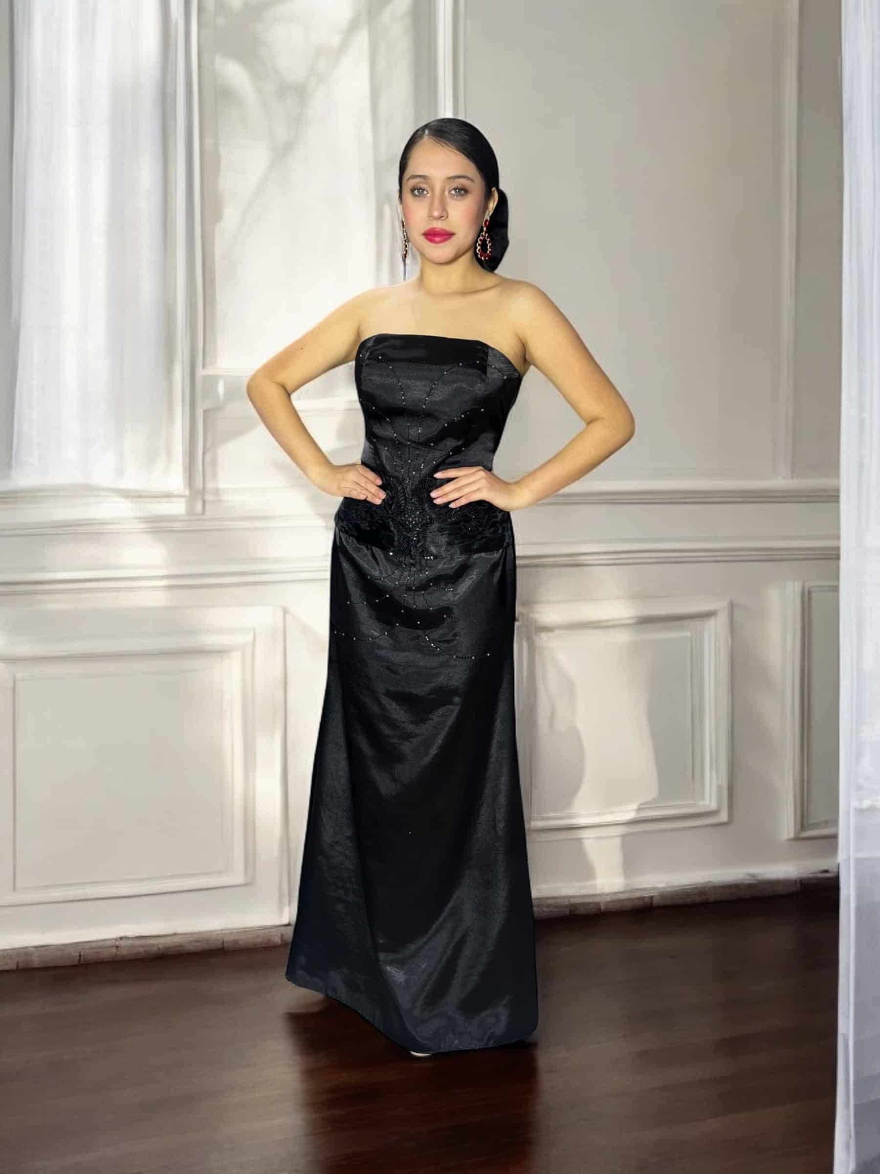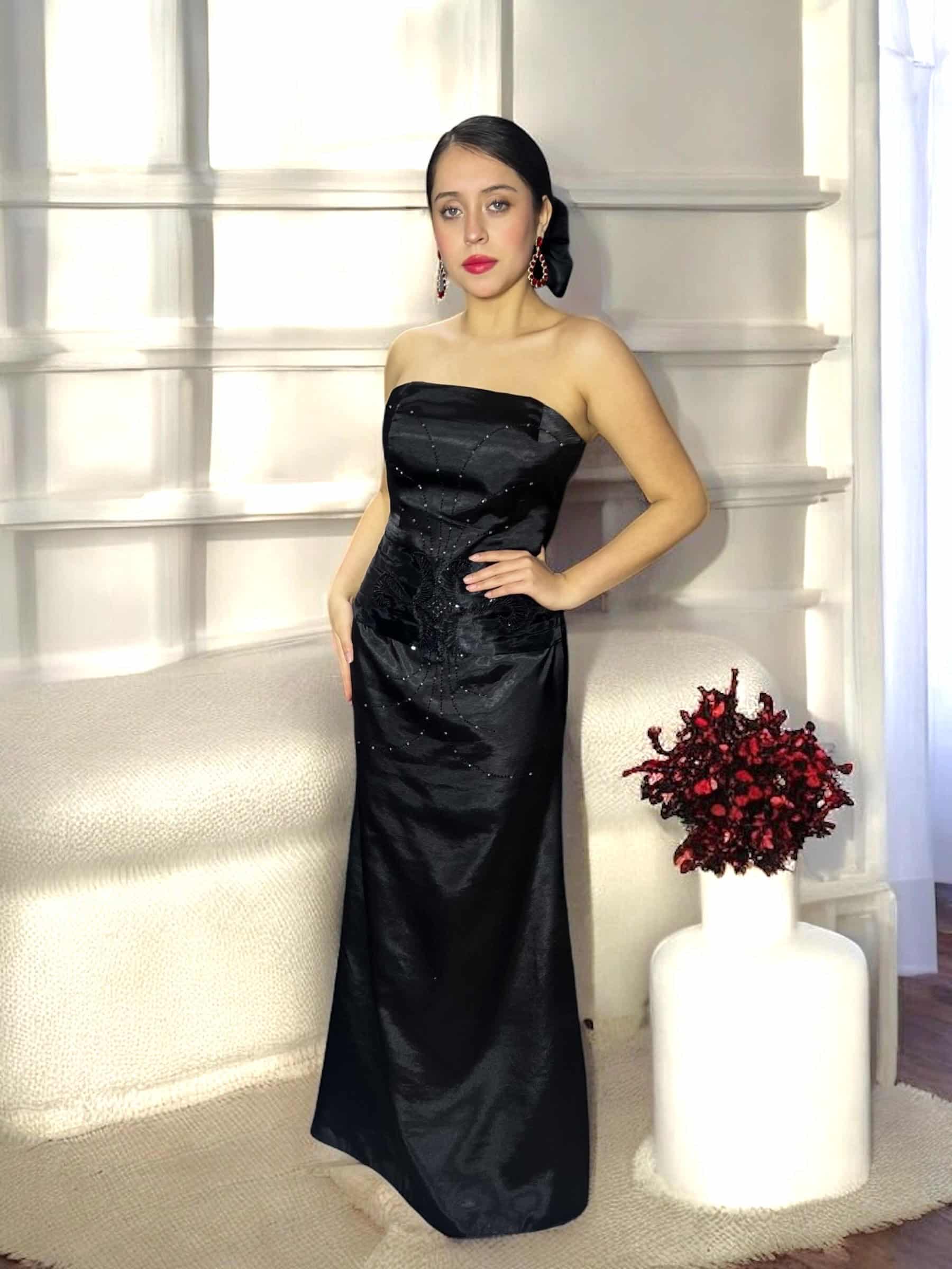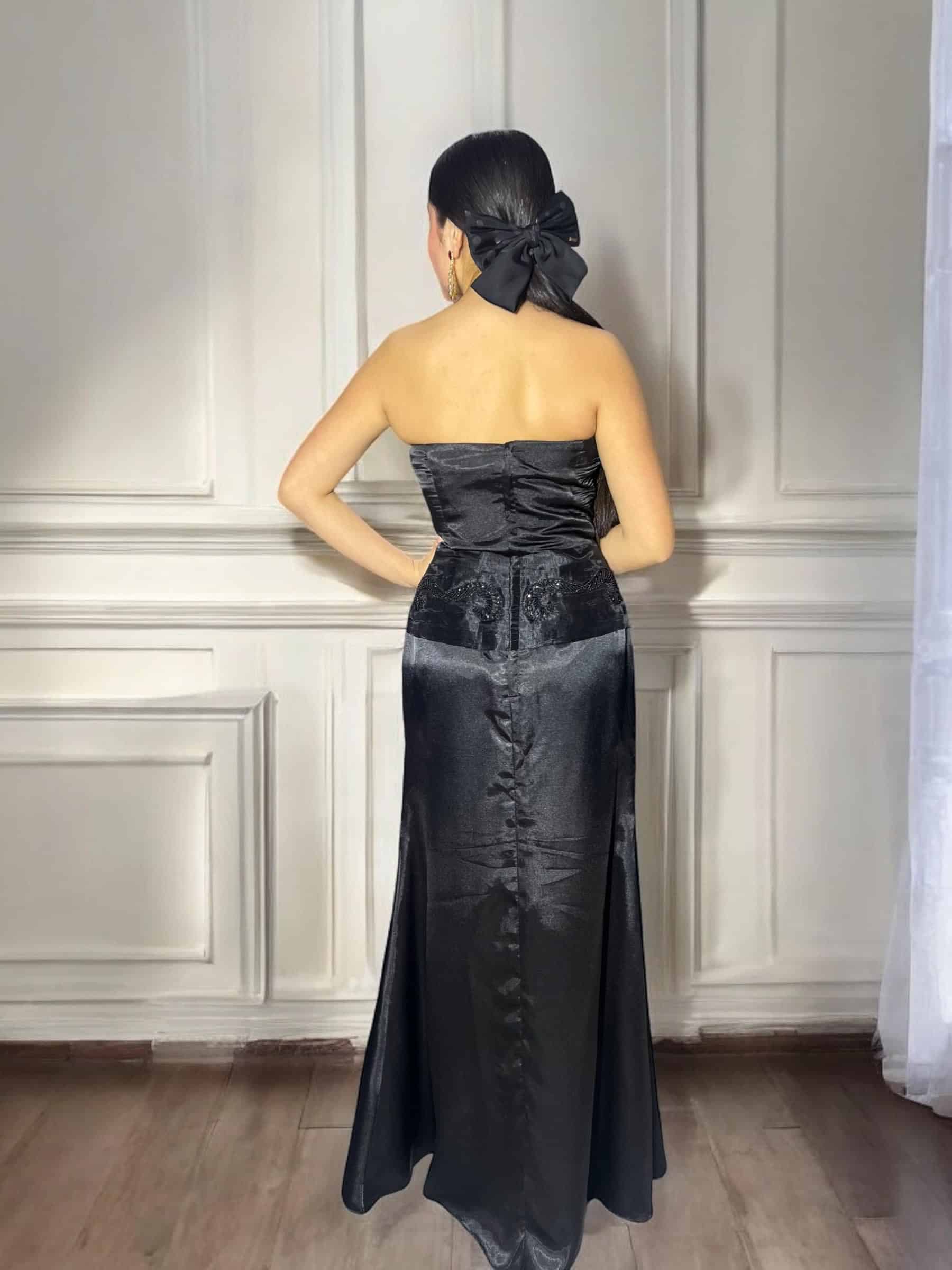 Vestido de Gala Negro Satín Elegante-Temuco